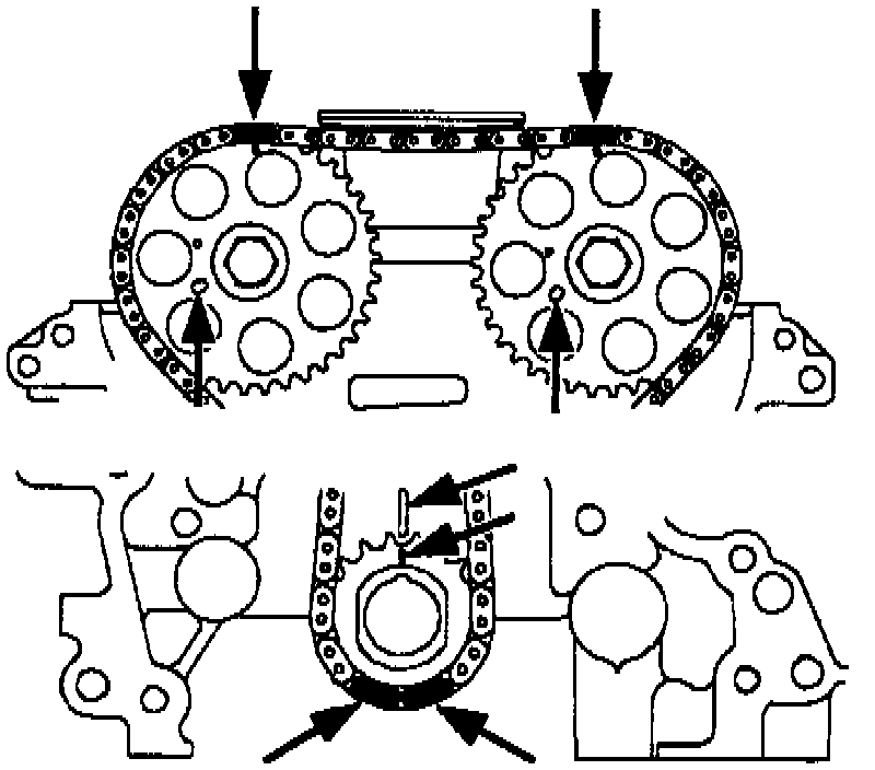 Diagrams of the engine timing marks.