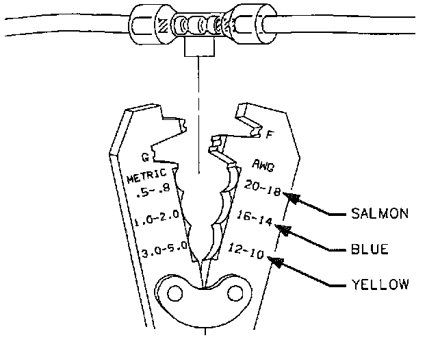 2. Determine proper sleeve for gage of wire. Position stripped ends in sleeve until wires hit stop.