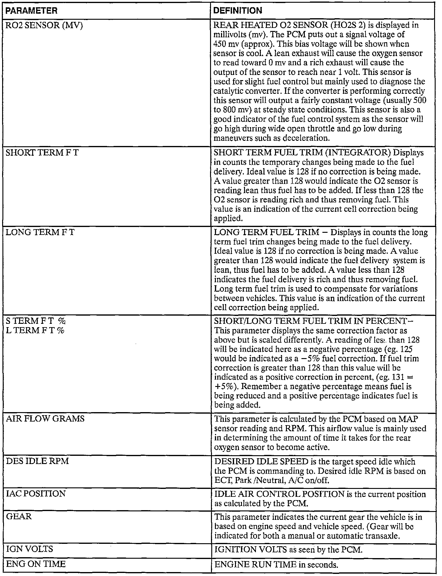 Scan Tool Data Definitions