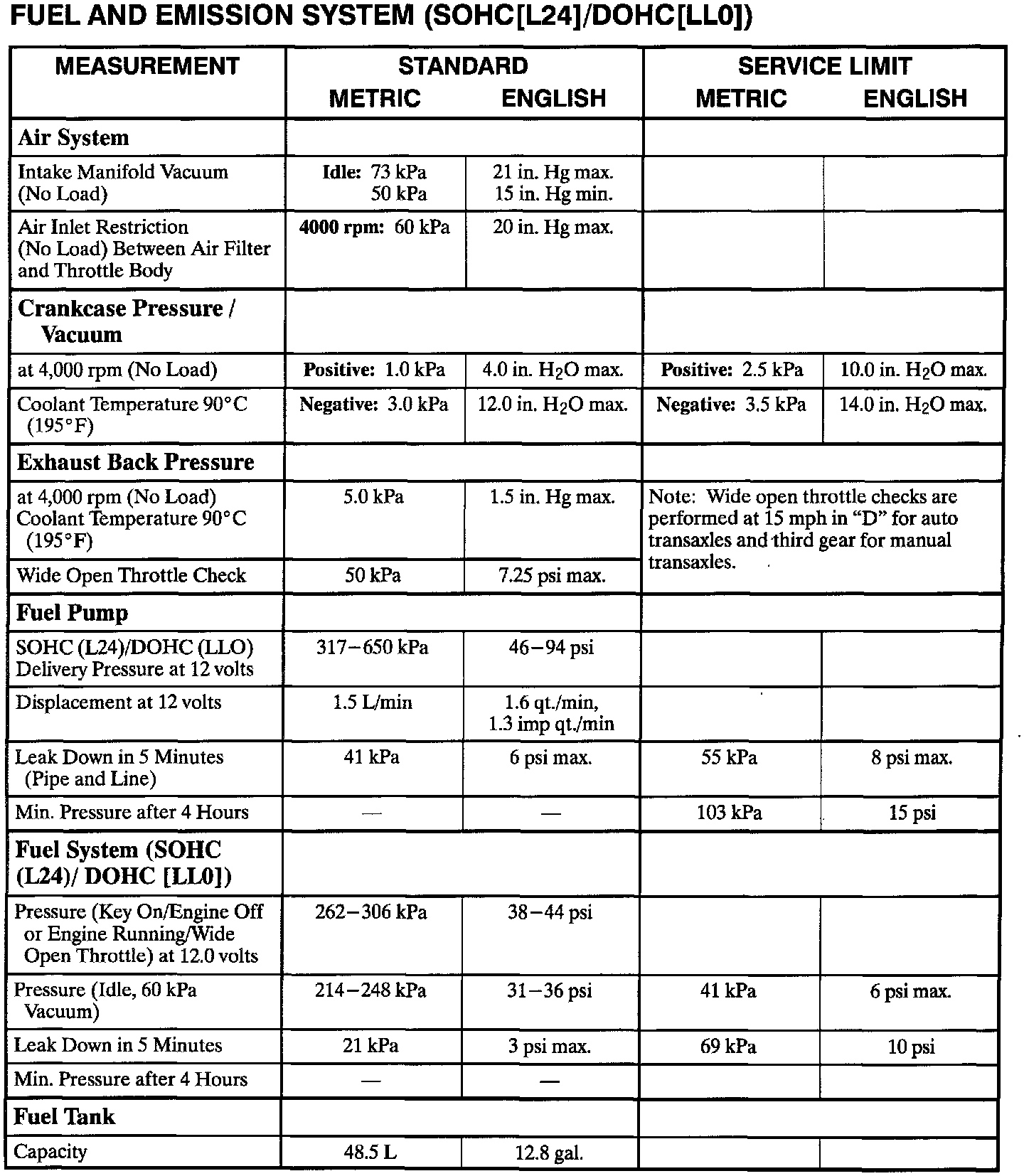 Specification Chart (cont'd):