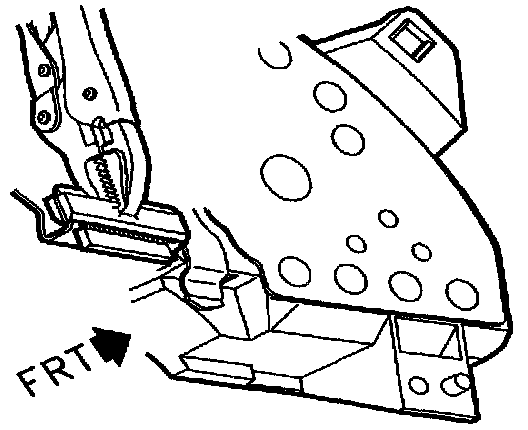 6. Insert the curved jaw of the tool, SA9701Z, under the speedometer flex printed circuit board connection.