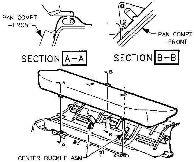 1. Disengage seat cushion by pushing rearward, then upward at two front retaining locations to release the rear cushion from the retainers.