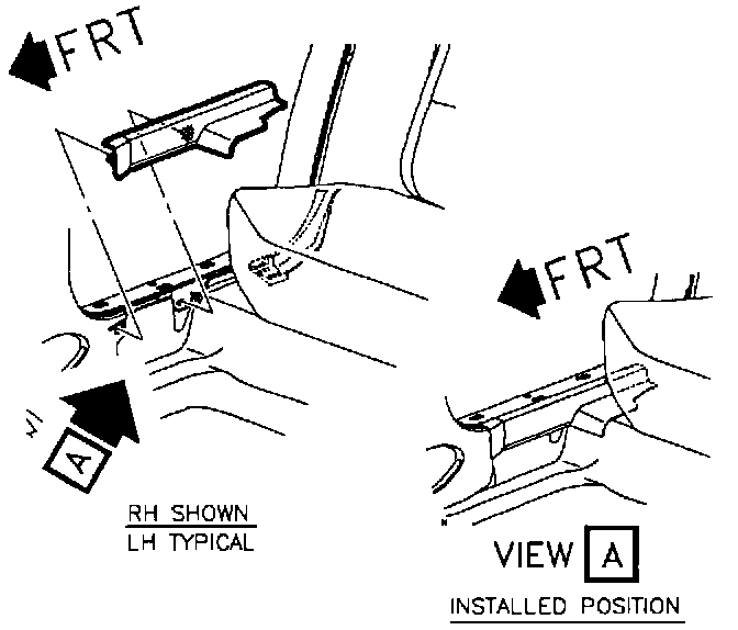 5. Remove body lock trim finish molding by pulling firmly, starting at the bottom of the molding to disengage clips.