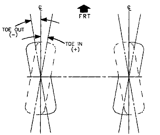 Toe is a measure of how far a wheel is turned in or out from the straight ahead direction. When the front of a wheel is turned in, the toe is positive. When turned out, the toe is negative.