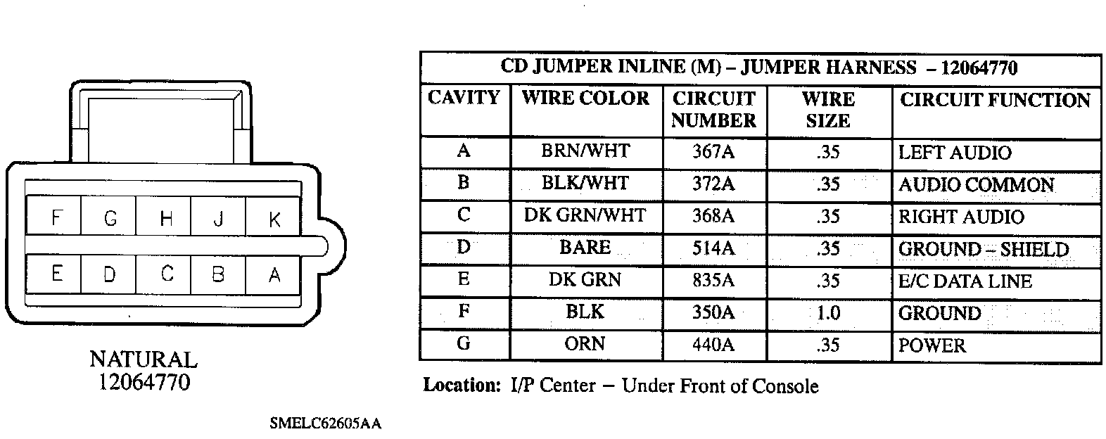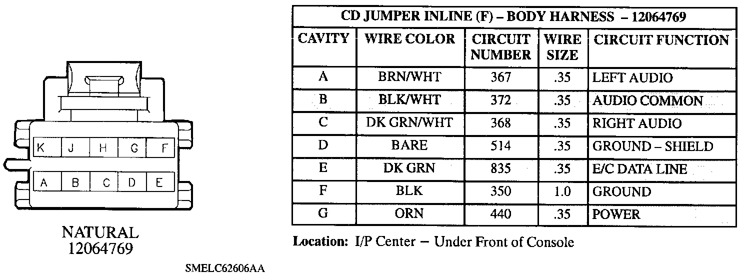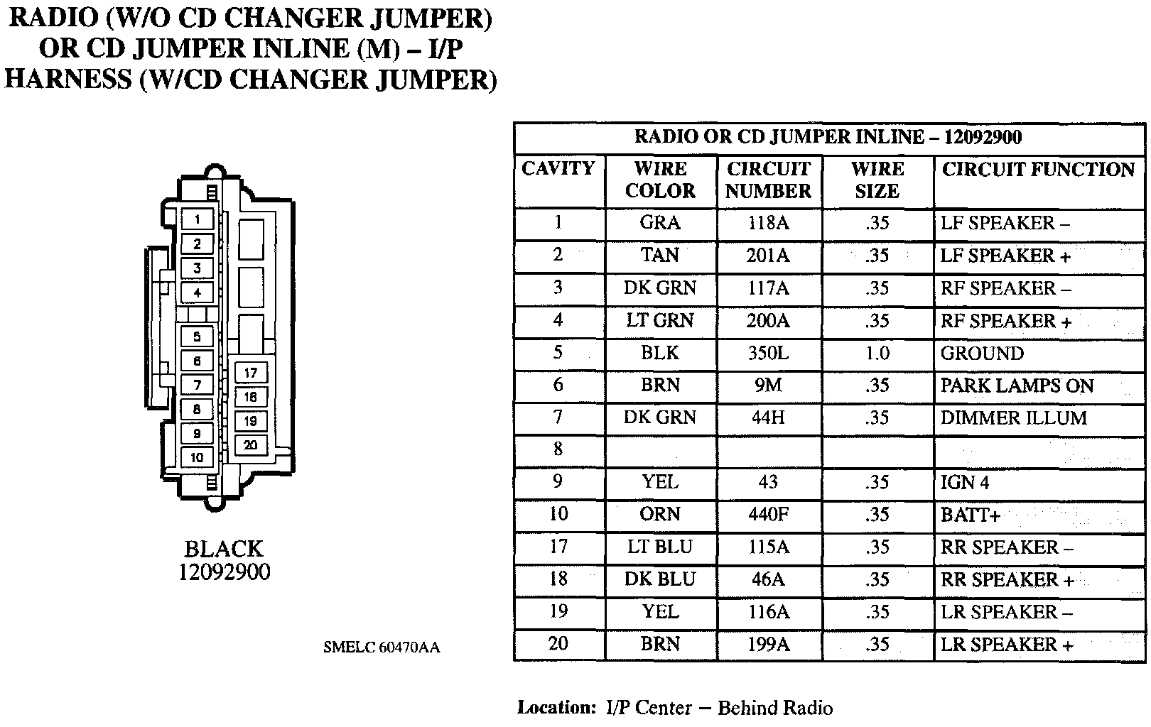 Radio (W/O CD Changer Jumper) Or CD Jumper Inline (M) - I/P Harness: