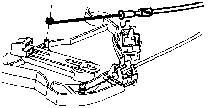 12. Reach under dash and release mode cable hold down clip by carefully pushing up on plastic tab while pushing down on top of cable.