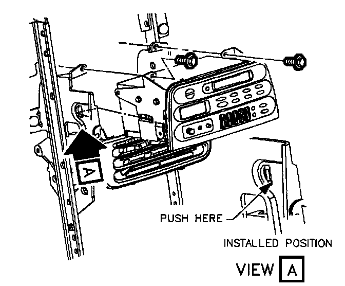 11. Install radio/HVAC controller cover. Push in at clip locations.