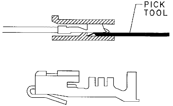 2. Insert the terminal lock release tool into the front of the connector cavity. Pull the wires and terminal out of the back of the connector.