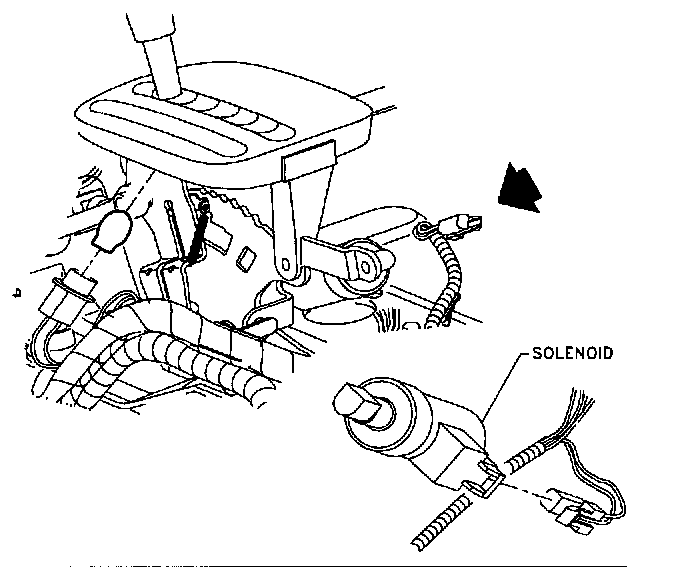 3. Install Brake Transaxle Shift Interlock (BTSI) solenoid into control base assembly. Connect two plastic retainers to control base assembly.