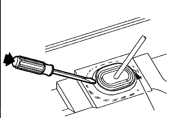 11. Place a large flat blade screwdriver against the driver's side of the cable pass through grommet as shown.