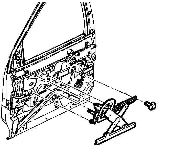 1. Slide regulator assembly into door and position regulator with attachment bolts.