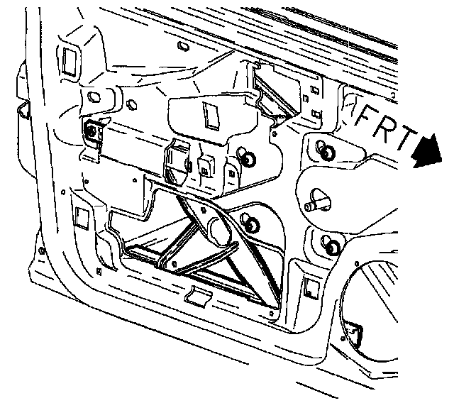 4. Remove front door window. If power regulator has failed in the full up position lower window and regulator as an assembly to access window insulator (slide clip) retainer tabs.
