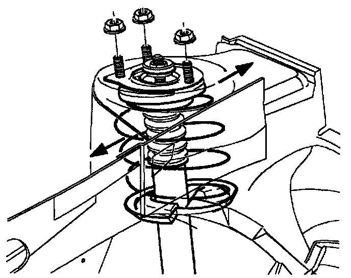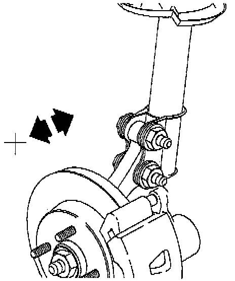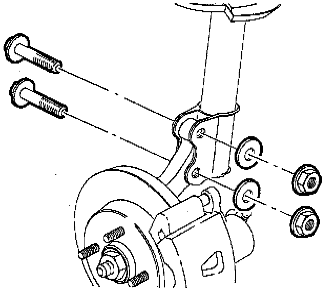 2. Loosen two strut-to-knuckle fasteners and pull or push knuckle in direction of desired change. This will allow up to 1.5 degrees of adjustment.