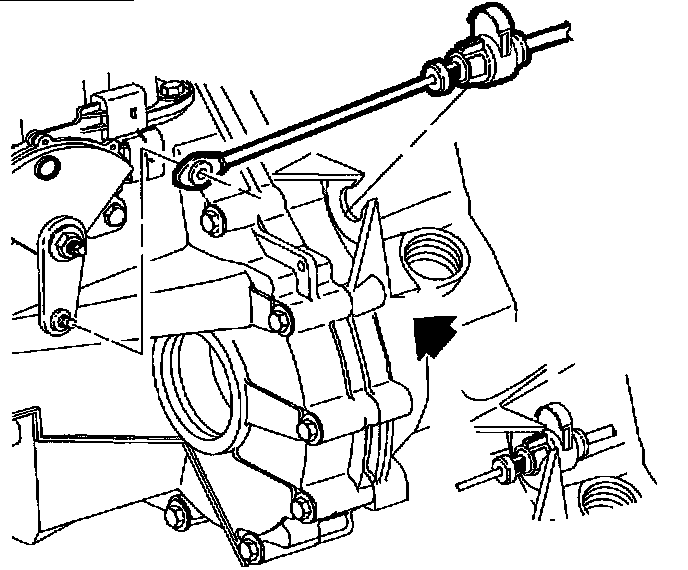 IMPORTANT: All service replacement control cables will have the bolt-in type pass-through grommet. The bolt-in type cable pass-through grommet is installed from the inside of the vehicle.1. Guide control cable assembly through cable pass-through hole in floor pan.