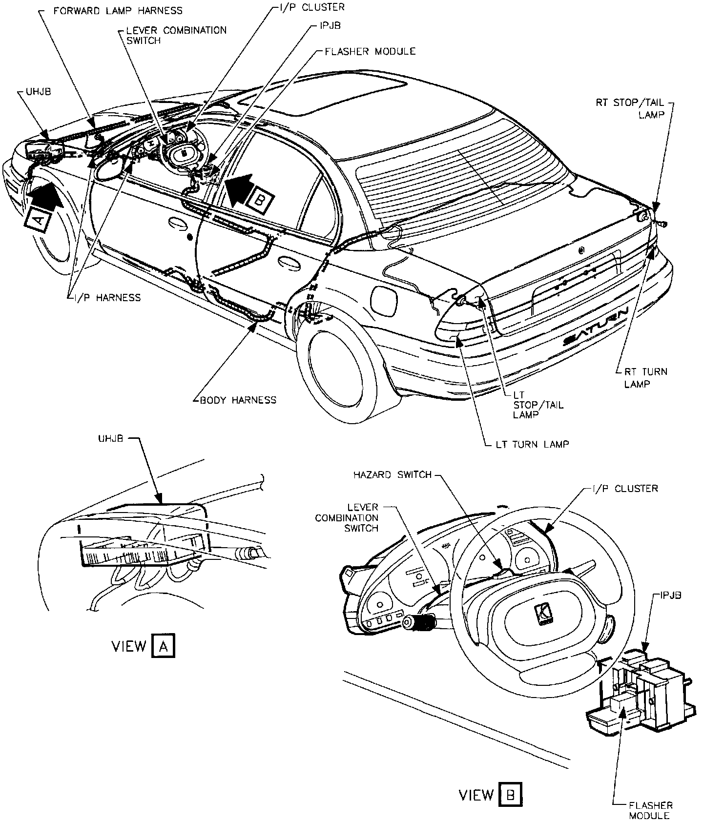 Turn/Hazard/Stop Lamps Component Location (Sedan Shown - Wagon Similar):