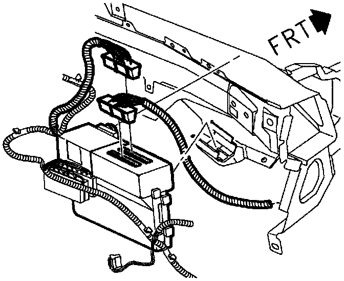1. Lower PCM into PCM bracket while guiding attachment stud into slot in cross car beam.