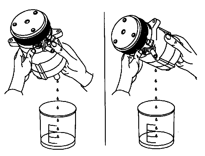 8. Drain the oil from the new A/C compressor into a clean, dry container.