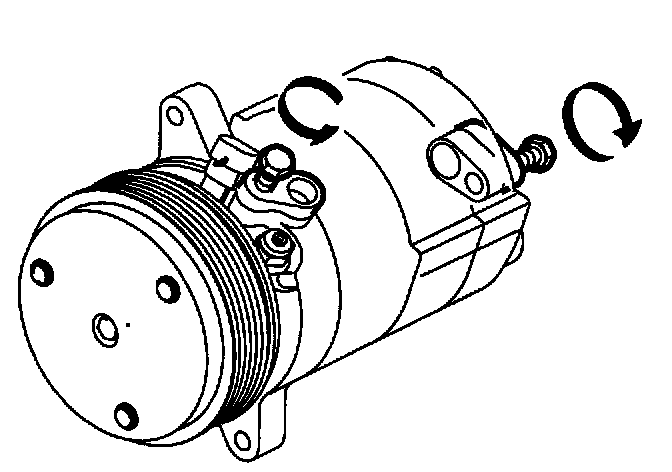 c. Turn the A/C compressor over to drain the oil from the low side port.
