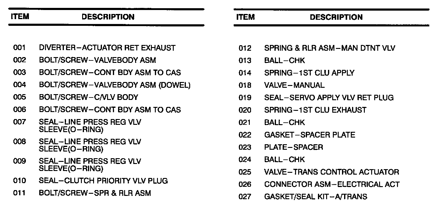 Control Valve Assembly Components