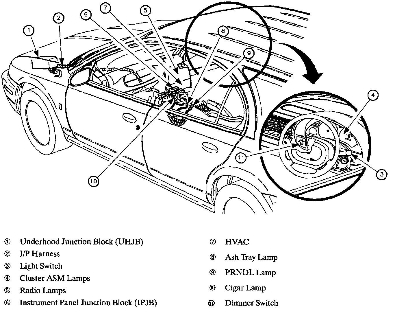Interior Lamps - Dimming: Dim Illumination Lamps Component Location:
