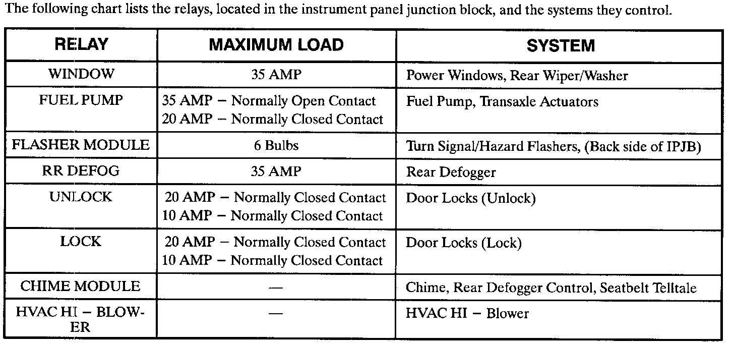 Instrument Panel Junction Block (IPJB): Relay/Module Circuit Feeds: