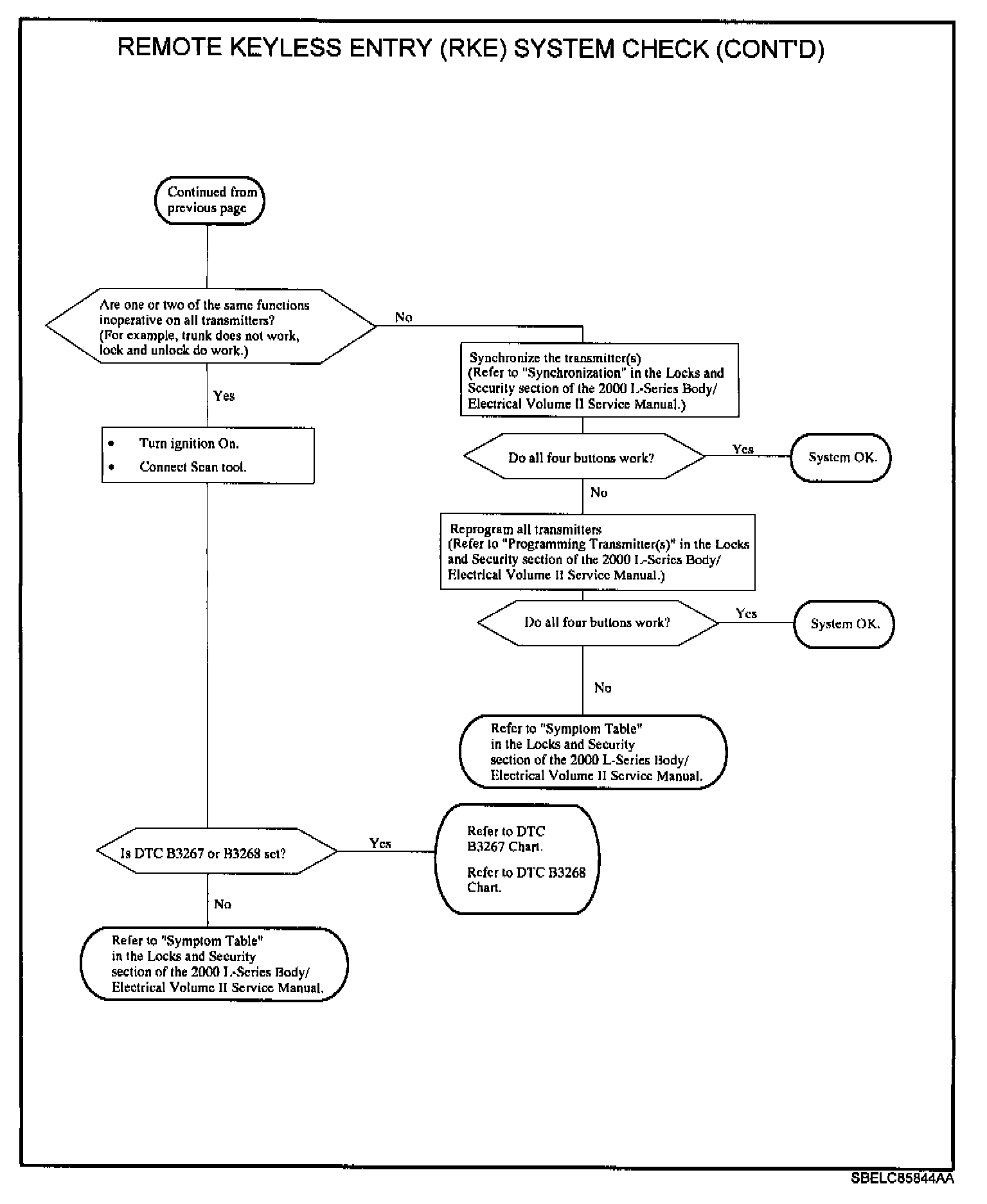 Refer to the Remote Keyless Entry (RKE) System Check diagnostic chart within this bulletin for further diagnostic information.