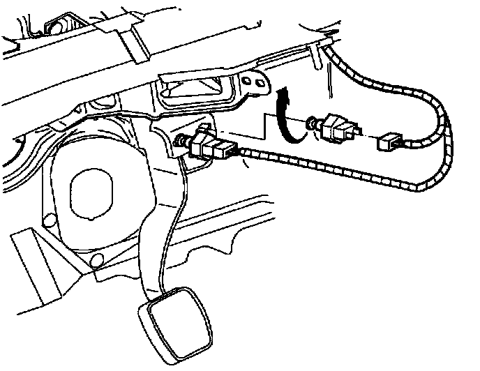 5. Remove stoplamp switch and cruise brake switch, if equipped. Rotate 180 degrees then pull out.