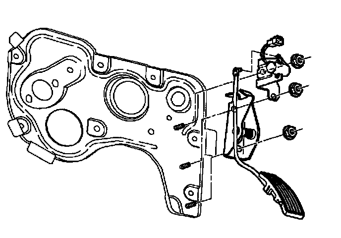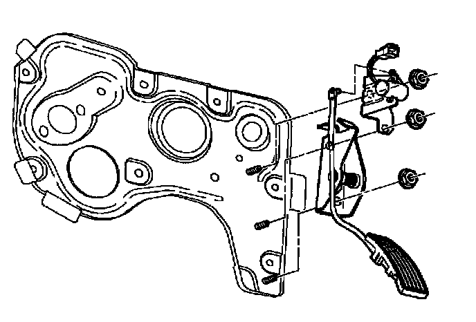 6. Remove accelerator pedal assembly fasteners and move pedal out of the way (L81 shows).