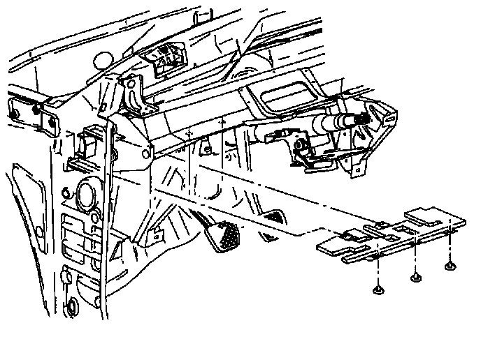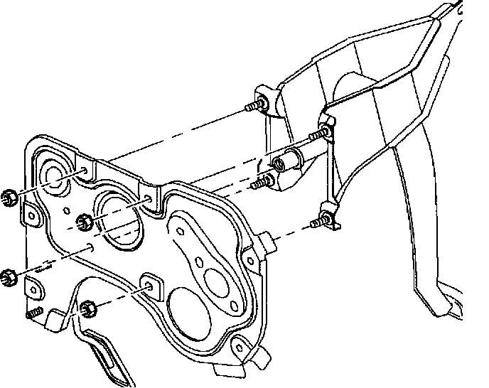 9. Remove pedal bracket fasteners located under hood around brake booster.