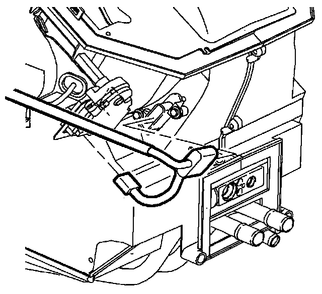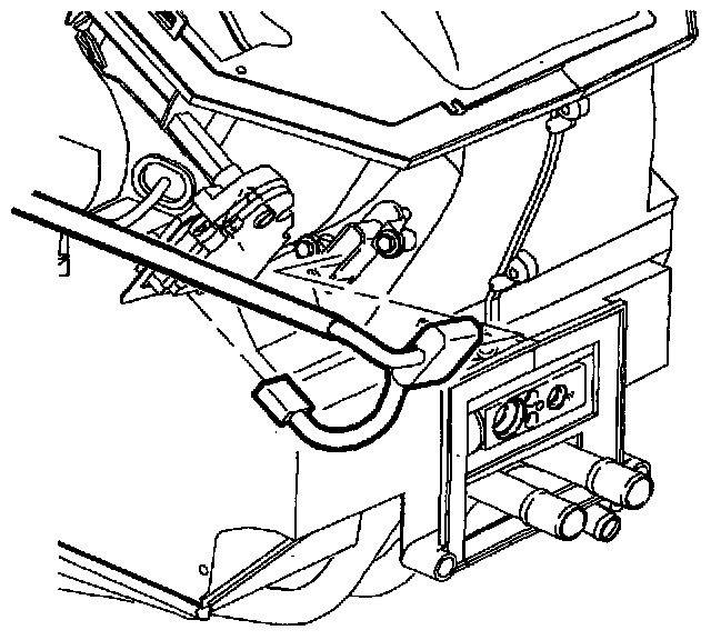 7. Remove right side heater outlet assembly retainer and remove outlet.