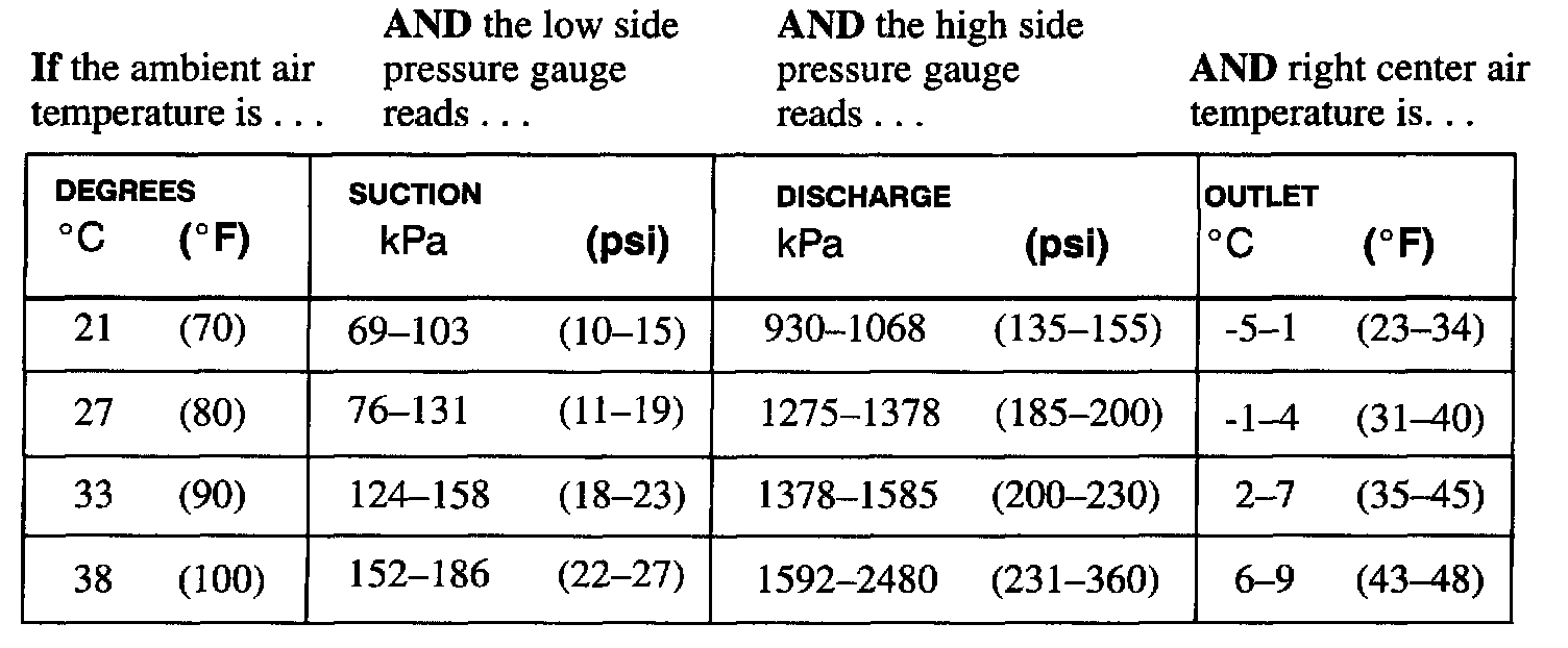 ^ This condition could generate an intermittent cooling complaint along with reduced air flow because of evaporator freeze up at lower ambient air temperatures.