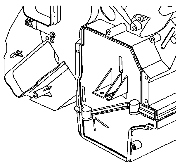 21. Install blower motor housing. Housing rib must fit into slot in module case. Snap left and right clip into place and install fan housing to module screws.