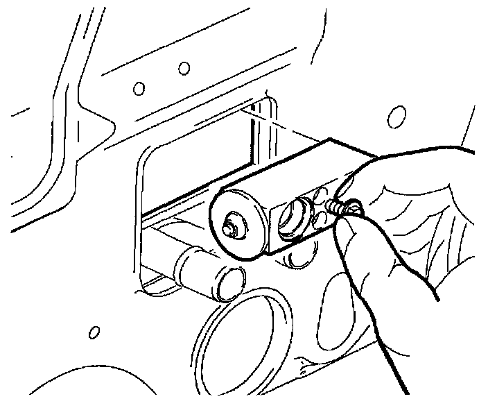 17. Using bolt as a handle, remove TXV from evaporator by gently rocking TXV while pulling forward in vehicle.
