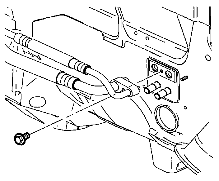 6. Reach down through blower motor opening and locate evaporator pipes and block.