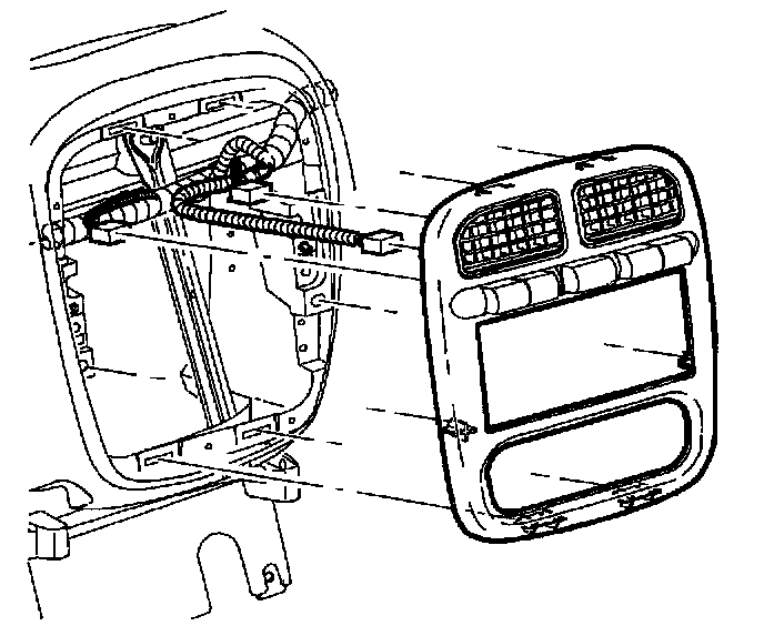 29. Remove center trim plate by grabbing trim plate at A/C vent area and gently pulling to disengage attaching clips.