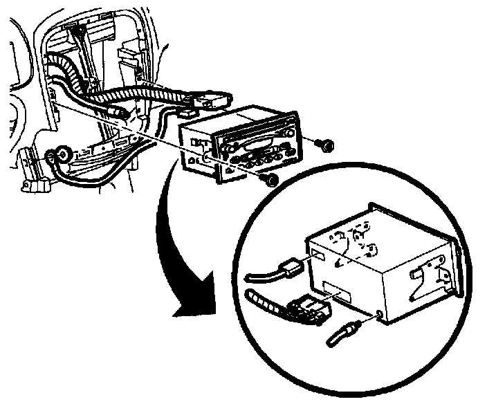 31. Remove radio fasteners and partially remove radio to expose radio electrical connections.