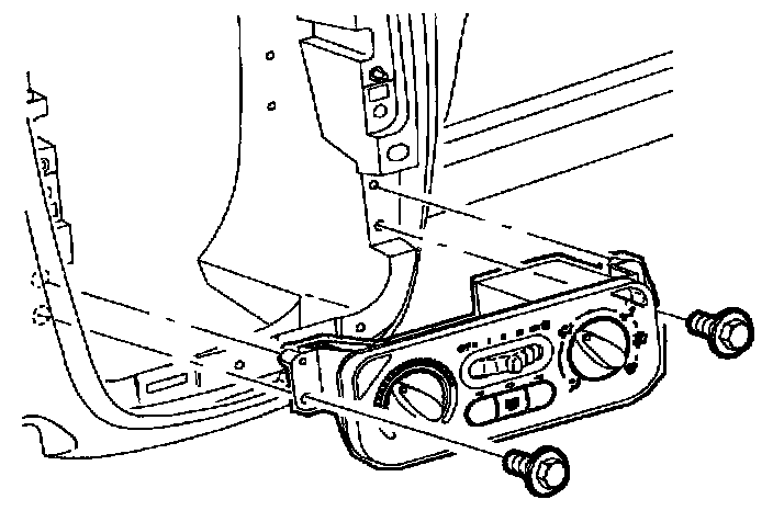 33. Remove HVAC controller fasteners and partially remove controller. Let controller hang loose in I/P opening.