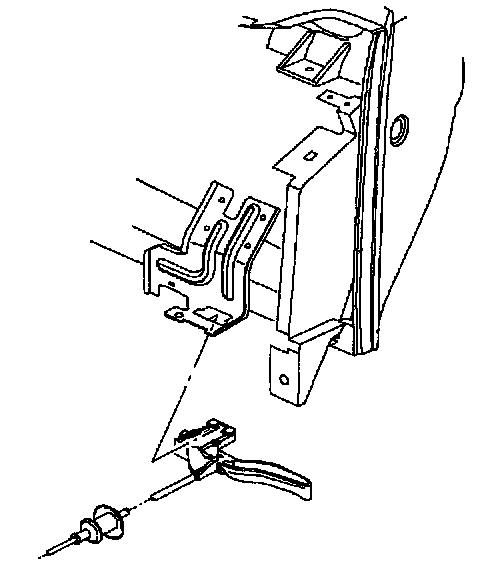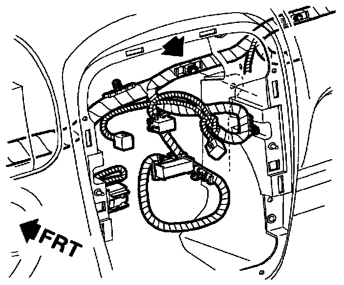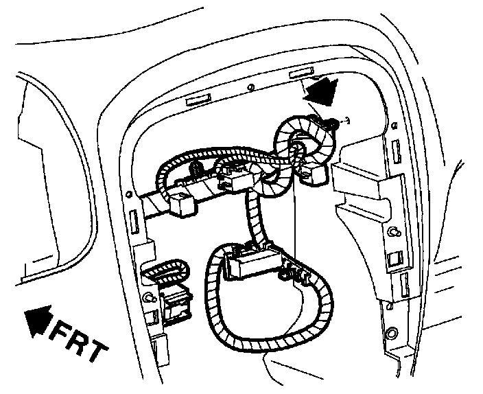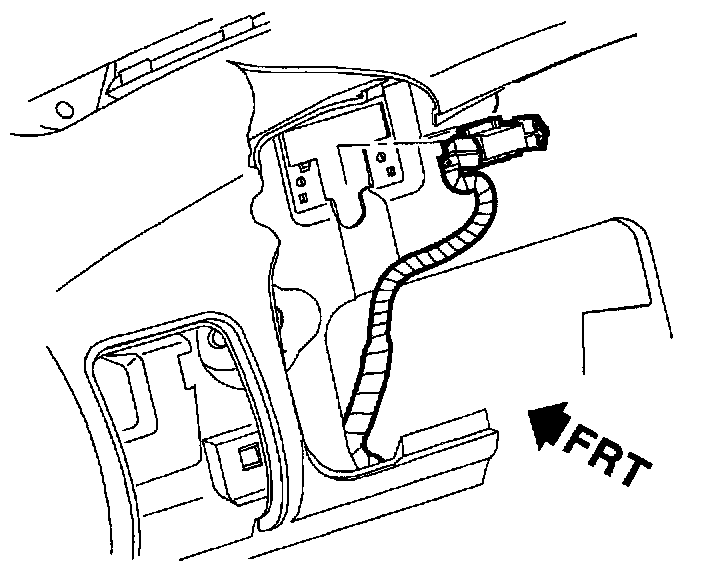 NOTE: On wagons, the rear washer supply hose is routed through the drivers side A-pillar. Use care not to pinch or damage hose.