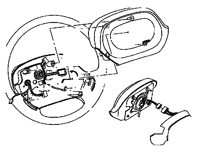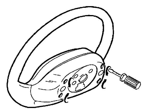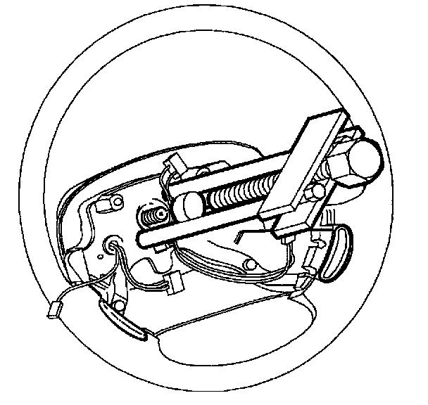 36. Remove inflator module by inserting a stubby flat blade screw driver into the triangle shaped hole in rear steering wheel shroud.