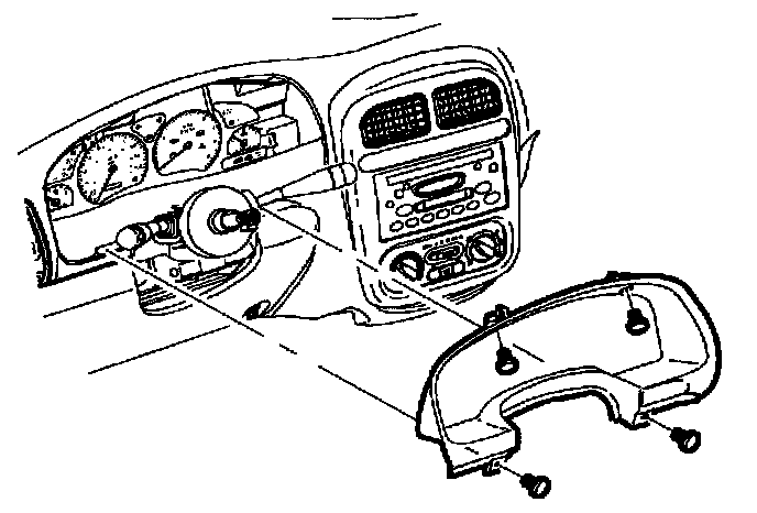 54. Remove two upper and two lower I/P trim plate fasteners and remove trim plate.