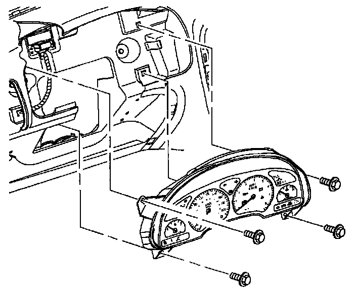 55. Remove upper and lower cluster fasteners and pull rearward to remove cluster.