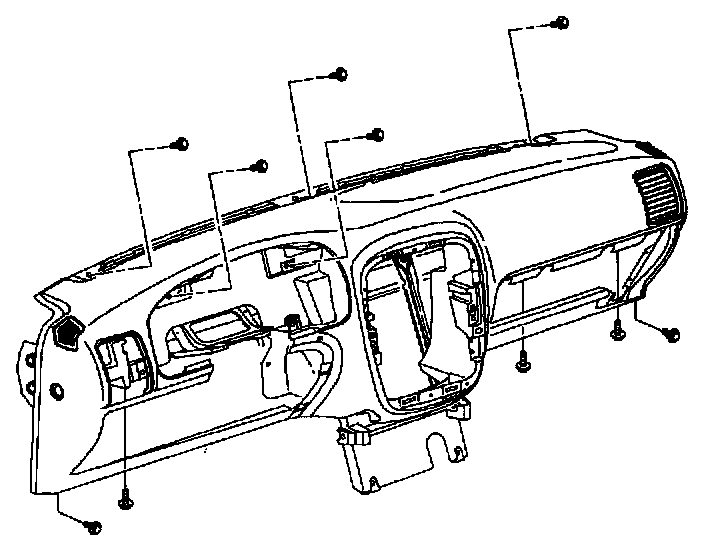 72. Pull upward at vent locations and remove windshield defroster grille.