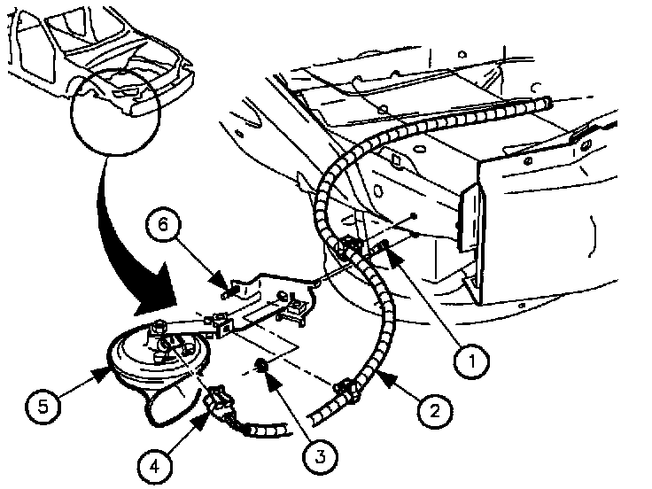 IMPORTANT: If the tuning bracket is removed from the horn, position bracket in the exact position as before and torque 12 N.m (106 lbs-in.), then test horn.
