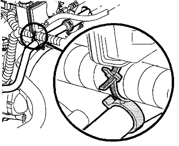 NOTICE: There is a stand-off clip between the A.I.R. tube and the wiring harness at the front of the transaxle. This must be in place to eliminate the possibility of chafing between the tube and the harness.