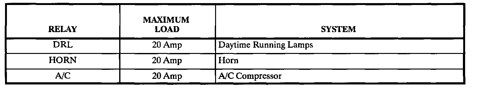 The chart lists the relays located in the underhood fuse block, and the systems they control.