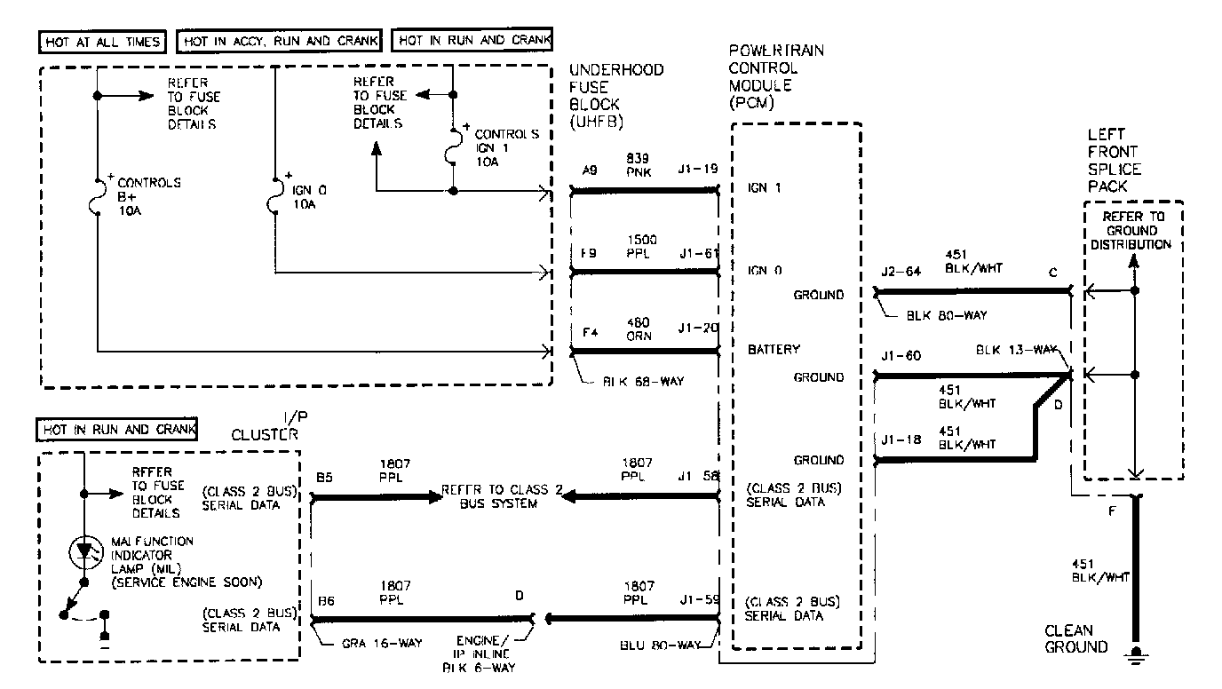 The class II data bus is used by PCM, BCM, IPC, SDM. The Scan tool communicates to both controllers through pin 2 of DLC connector. The Scan tool also uses pin 4 (circuit 350) of DLC as a ground reference when reading serial data. The class II data bus is normally around 0.5 volts and is switched high (seven volts) to low when communications are taking place.