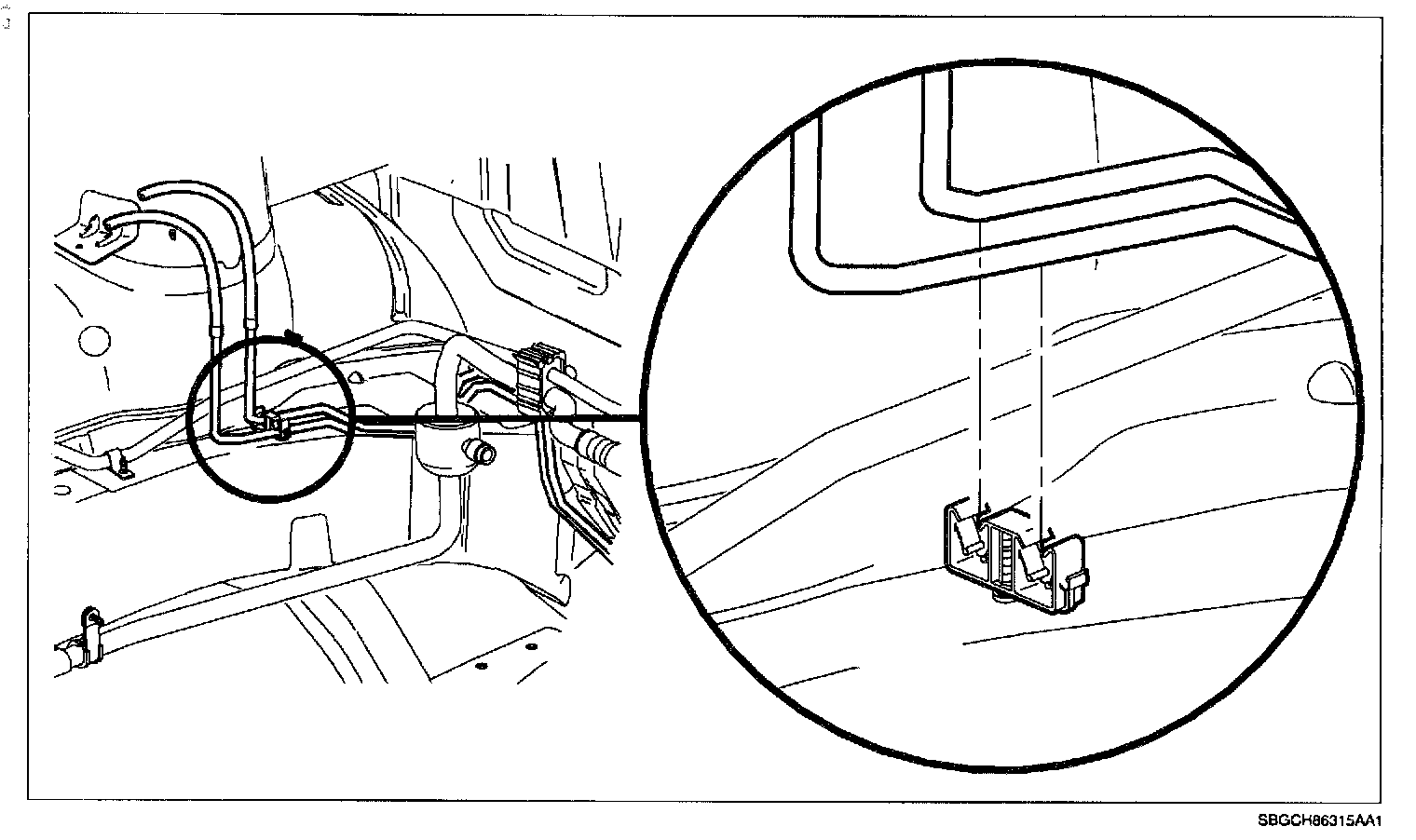 Verify that the tapping noise is coming from the fuel pipes by pulling the fuel pipes out of retaining clip on engine compartment rail on passenger side of vehicle. If tapping noise goes away when fuel pipes are removed from retaining clip, follow the procedure in this bulletin to install new isolated fuel pipe retaining clip (P/N 24425120).
