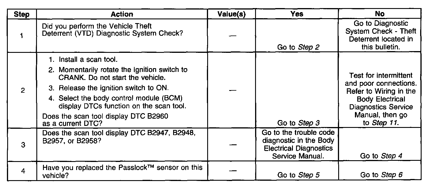 Refer to the service procedure in this bulletin for diagnosis of the Passlock(TM) system.