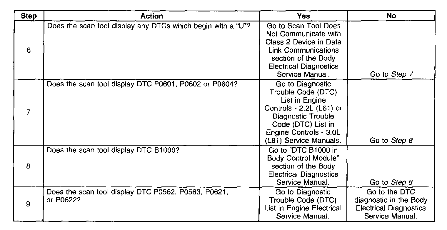 6. The presence of DTCs which begin with "U" indicate another module is not communicating. The specified procedure will compile all the available information before tests are performed.
