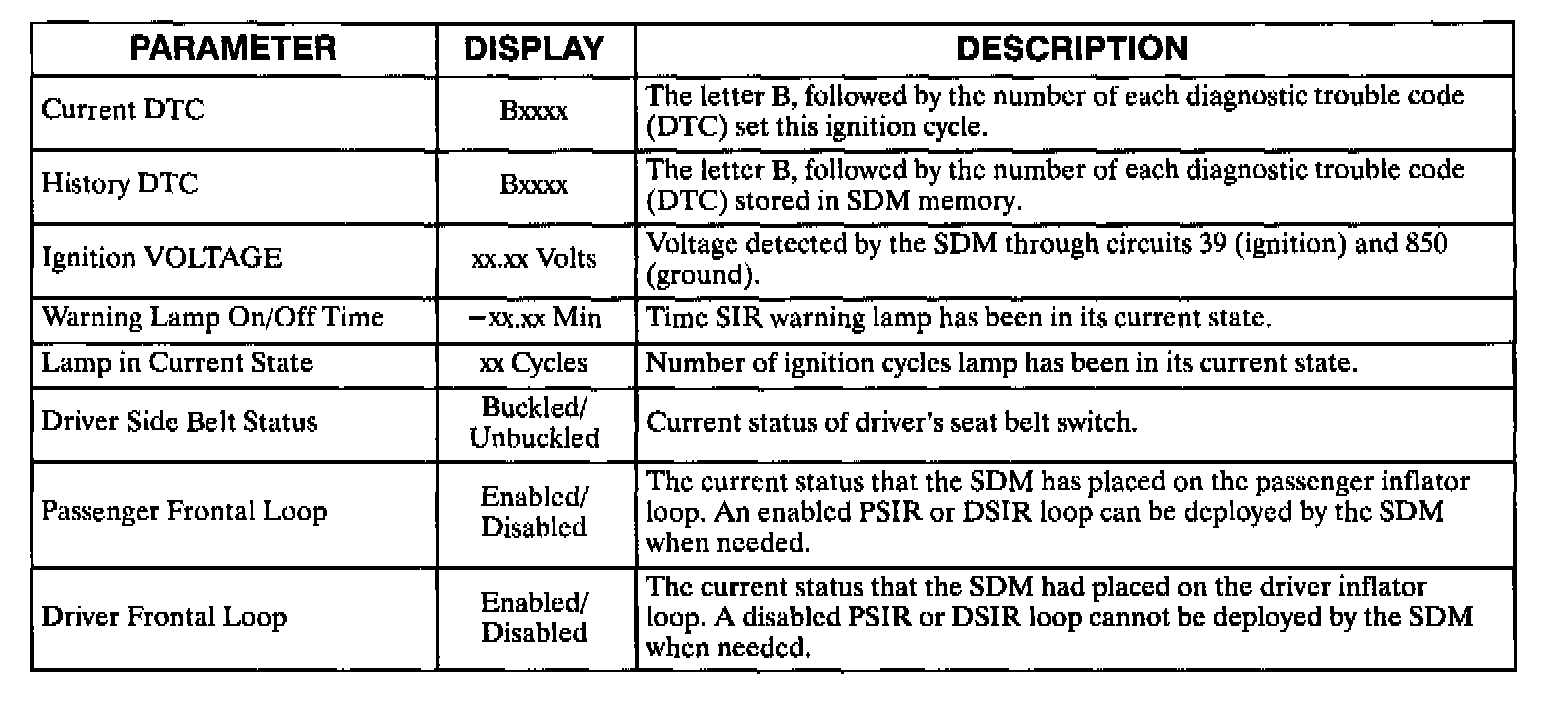SCAN TOOL DATA PARAMETER DEFINITION: